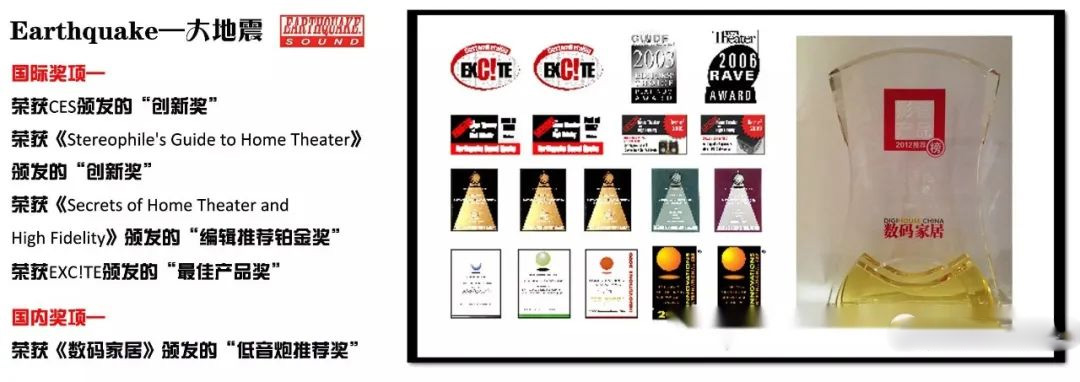 揚聲器選擇的是美國Earthquake大地震,到現在擁有近40年的歷史了,總部在美國加利福尼亞州,目前是CEDIA、SEMA、CEA核心成員單位,在業內獲獎無數。